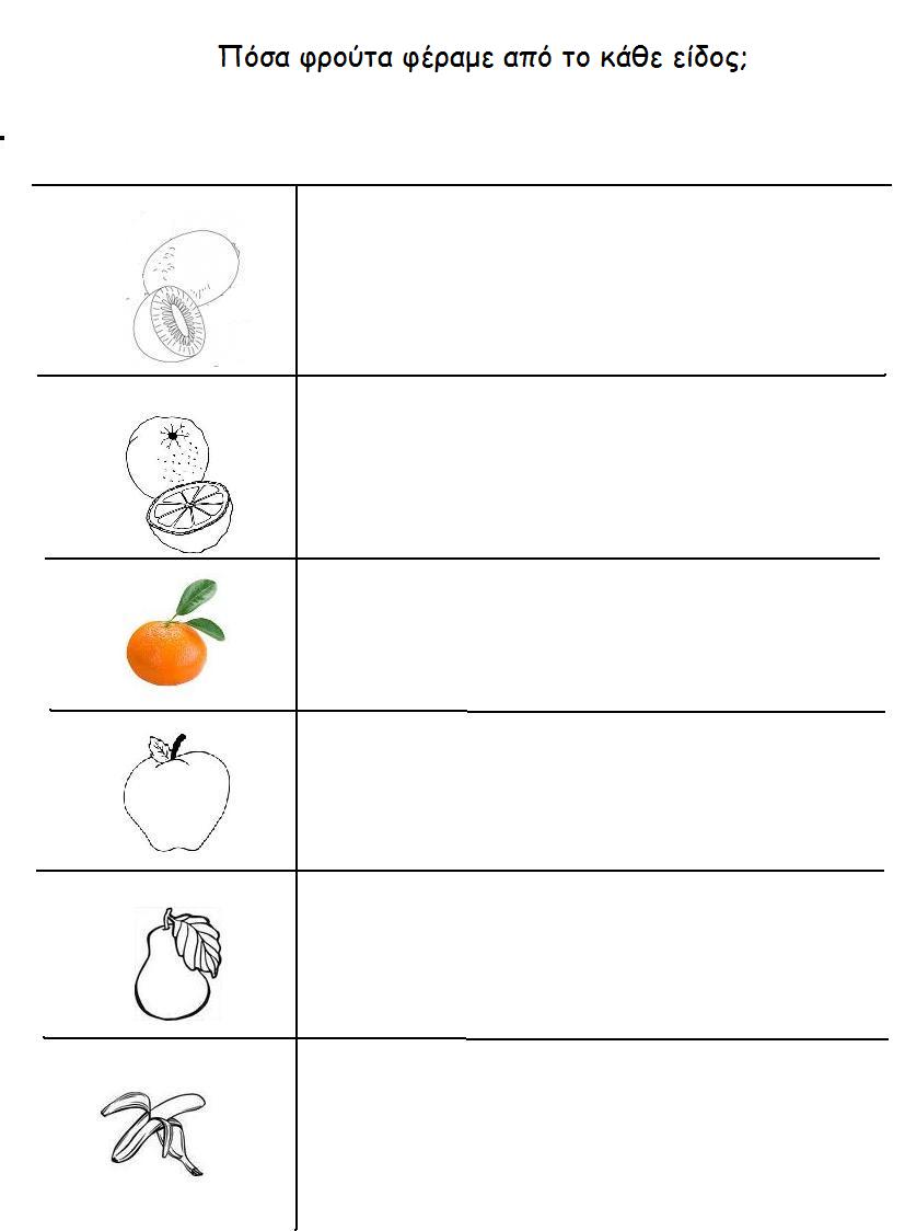Μετράμε πόσα φρούτα από το κάθε είδος φέραμε: